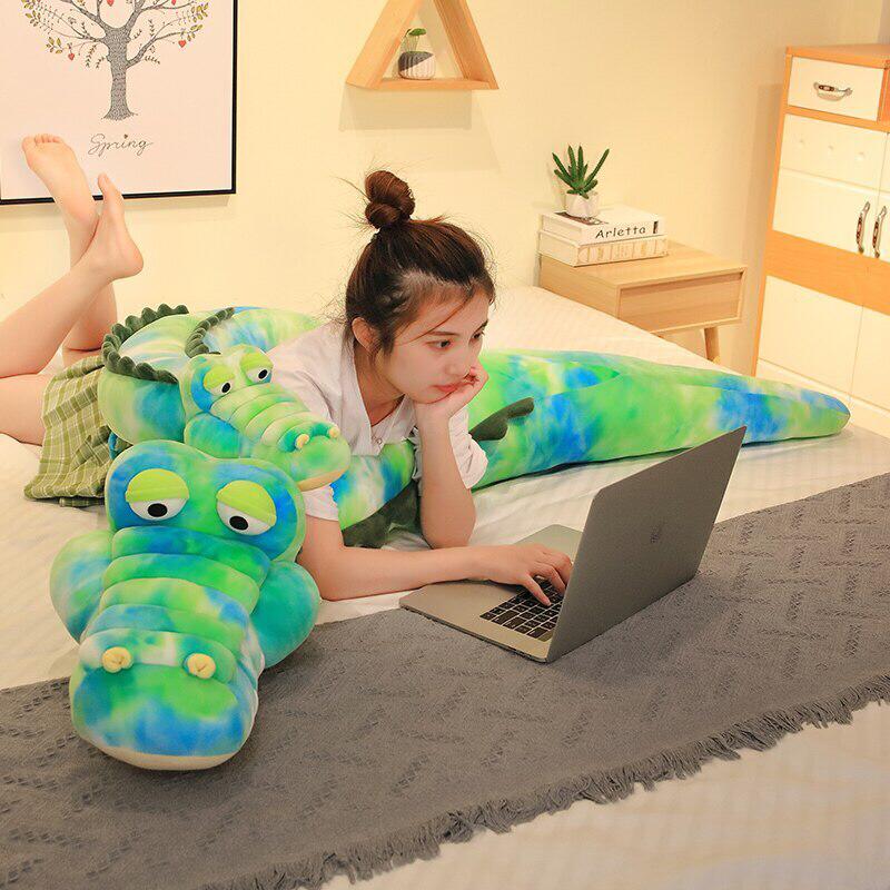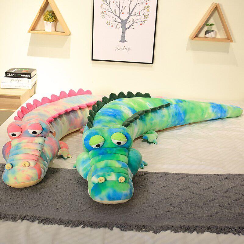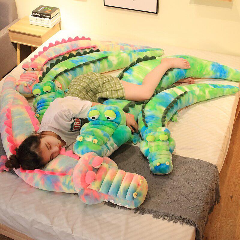 عروسک بغلی تمساح آبرنگی، 140 سانتی‌متر، رویه پولیشی مخمل نانو زیپ‌دار، الیاف ویسکوز پنبه (عروسک بالشتی اورجینال خارجی)